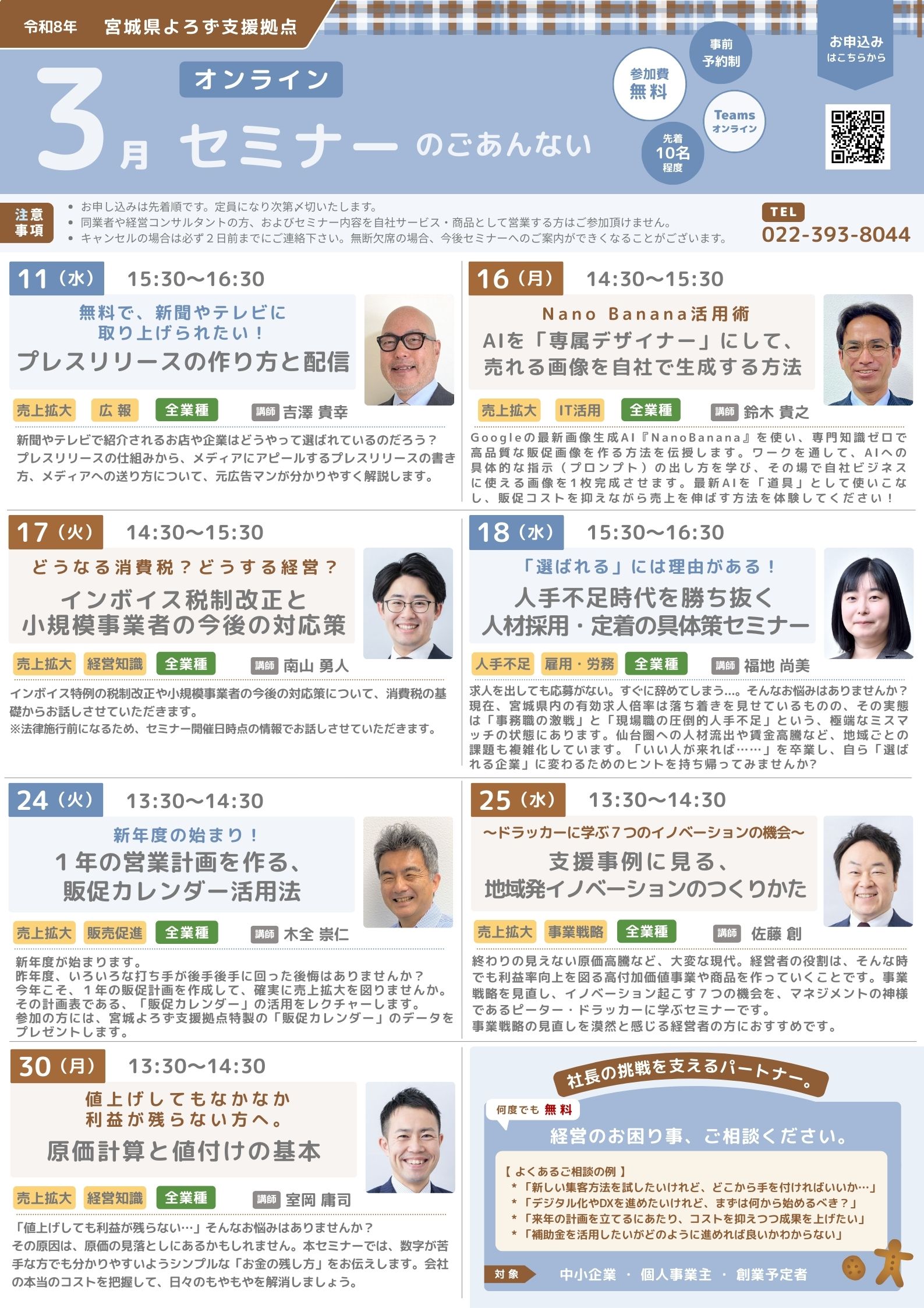 ※キャンセルの場合は必ず2日前までにご連絡ください。無断欠席の場合、今後セミナーへのご案内ができなくなる場合がございます。