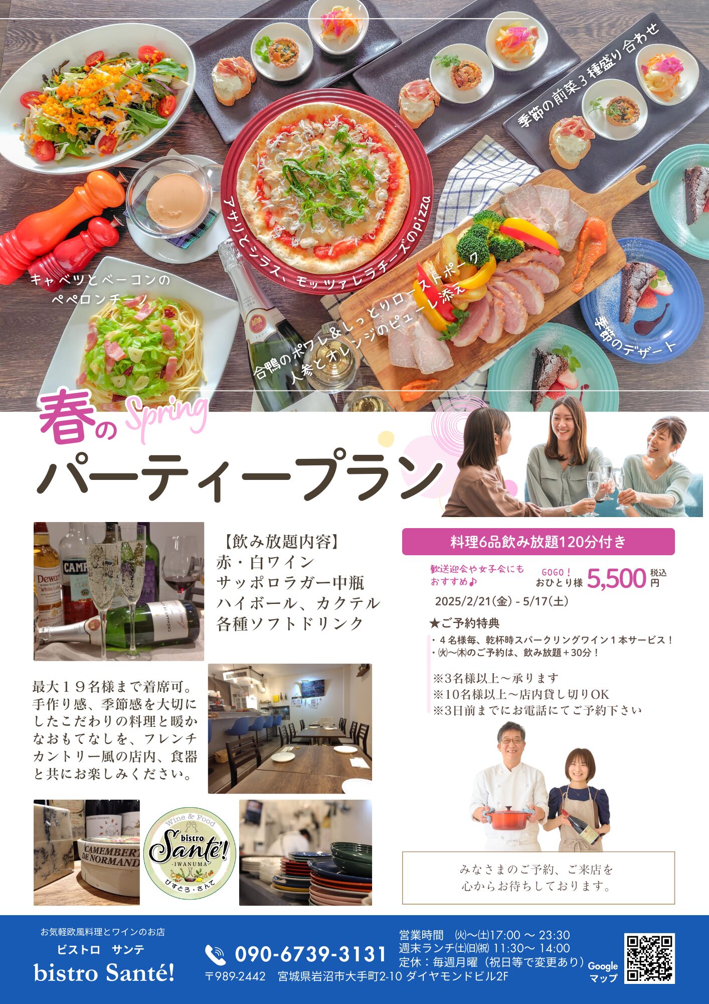 岩沼市でイタリアンの飲食店を営んでいる「ビストロサンテ」さん。店舗近隣の法人に向けた貸切パーティープランを企画・提供したことで、課題であった平日夜の集客ムラの解消に繋がりました。