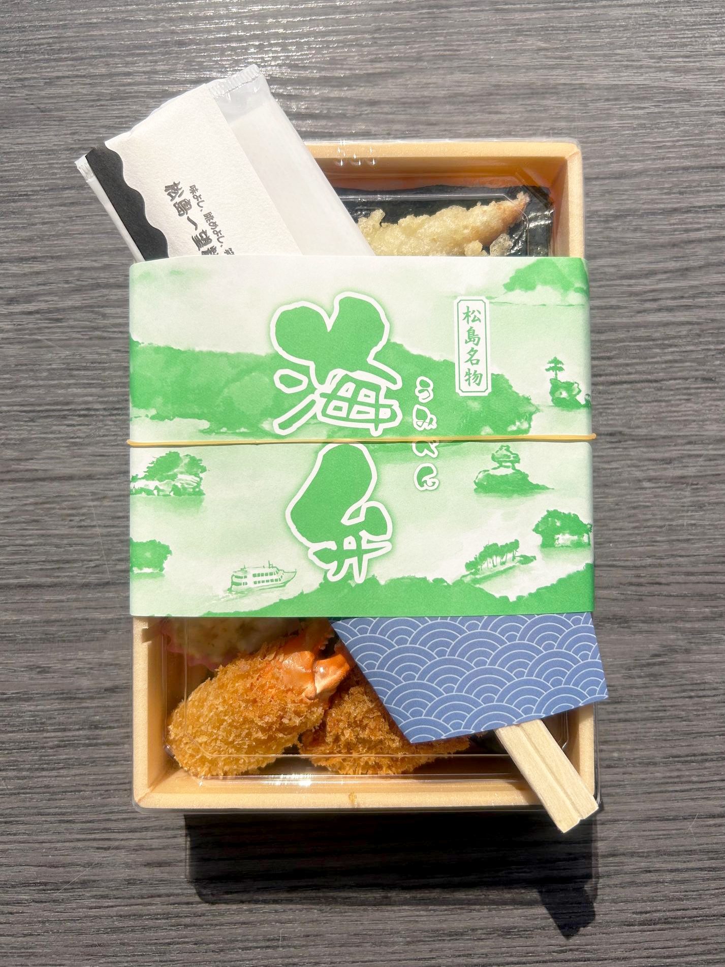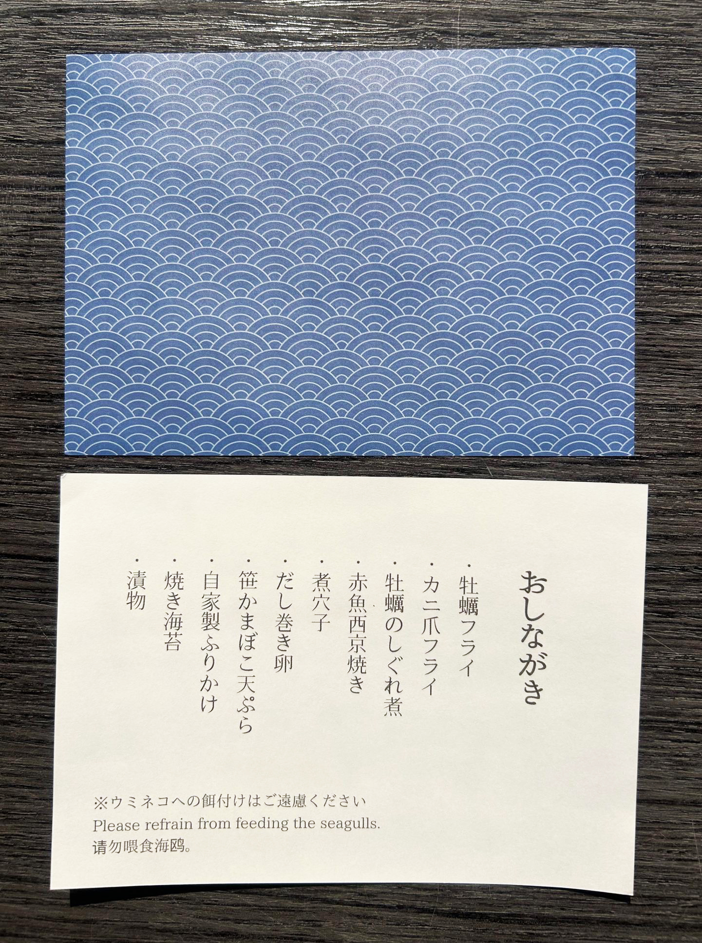 お弁当と一緒に手渡す小さな「お品書き」は海模様のデザインで、旅の記念品として残せるよう工夫。景色を楽しみながら読むことで、食事と風景が連動し、「海弁」の世界観を強調します。