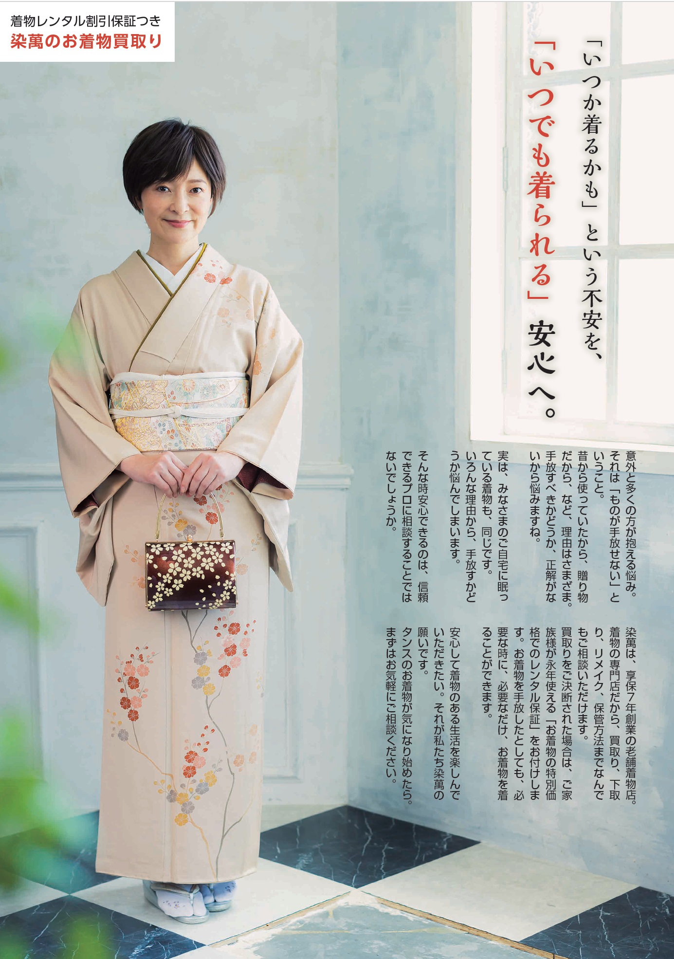 “「いつか着るかも」という不安を、「いつでも着られる」安心へ。染萬の着物買取り”。
